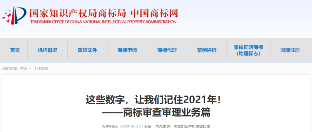 這一年,商標局認真落實國家知識產(chǎn)權局“八大專項行動”和“百項實踐活動”等12項任務,并延伸拓展服務群眾的20項具體舉措,積極為群眾排憂解難;統(tǒng)籌推進“八項改革”,穩(wěn)步推進商標審查審理提質增效,積極運用商標工作服務經(jīng)濟高質量發(fā)展。商標局與各地方商標審查協(xié)作中心在建黨百年的偉大時刻交出了屬于商標人的一份合格答卷。今天,我們用這些數(shù)字回顧2021年,記住商標人在“十四五”開局之年作出的積極貢獻!