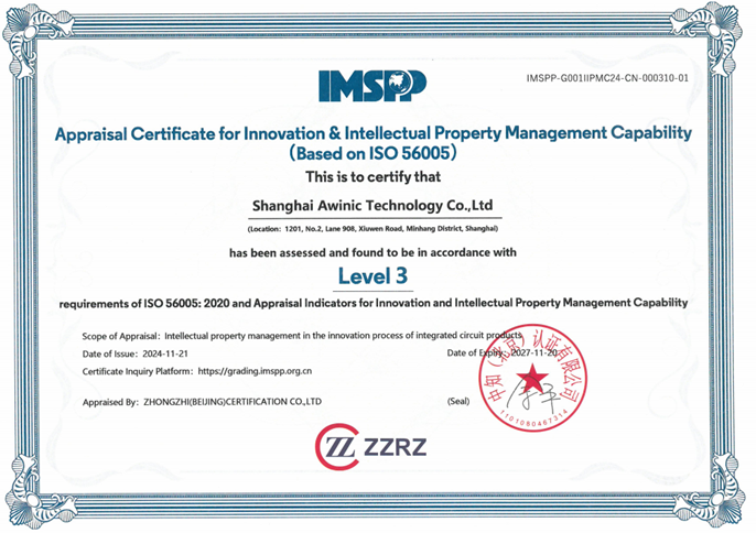 ISO56005《創(chuàng)新與知識產(chǎn)權(quán)管理能力》國際標準,旨在幫助企業(yè)建立和完善創(chuàng)新與知識產(chǎn)權(quán)管理體系,提升企業(yè)的核心競爭力。三級等級證書的獲得,意味著艾為電子在創(chuàng)新戰(zhàn)略規(guī)劃、創(chuàng)新過程管理、知識產(chǎn)權(quán)創(chuàng)造、運用、保護和管理等方面均達到了國際先進水平,為公司的可持續(xù)發(fā)展奠定了堅實的基礎(chǔ)。