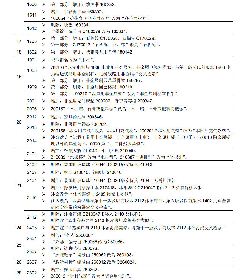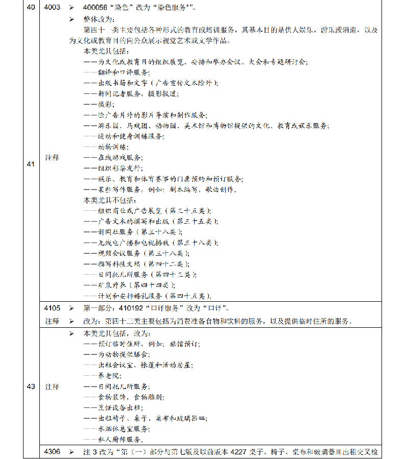 申請(qǐng)日為2021年1月1日及以后的商標(biāo)注冊(cè)申請(qǐng),在進(jìn)行商品服務(wù)項(xiàng)目分類(lèi)時(shí)適用尼斯分類(lèi)新版本,申請(qǐng)日在此之前的商標(biāo)注冊(cè)申請(qǐng)適用尼斯分類(lèi)原版本。以尼斯分類(lèi)為基礎(chǔ),我局對(duì)《類(lèi)似商品和服務(wù)區(qū)分表》作了相應(yīng)調(diào)整,現(xiàn)將尼斯分類(lèi)與《類(lèi)似商品和服務(wù)區(qū)分表》的修改內(nèi)容一并予以公布。