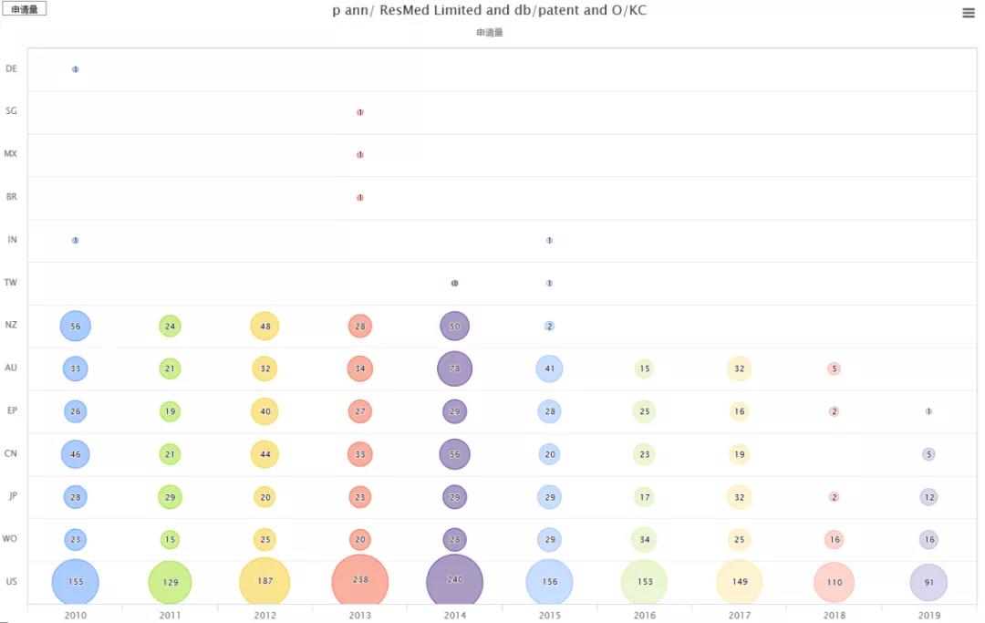 從上圖可知,美國、澳大利亞、中國、日本和歐洲為布局重點,新西蘭有競對費雪派克,前期也做了布局,2015年可能考慮到市場規(guī)模等原因,未再有新的專利布局。