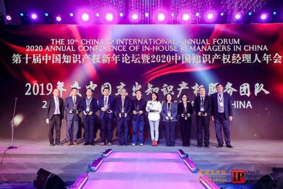 華進(jìn)知識(shí)產(chǎn)權(quán)高級(jí)合伙人黎葉、合伙人鄭露、雷佩玲、哈達(dá)等人受邀出席本屆新年論壇的頒獎(jiǎng)盛典。典禮上,華進(jìn)知識(shí)產(chǎn)權(quán)憑借卓越實(shí)力再次榮獲“2019中國(guó)杰出知識(shí)產(chǎn)權(quán)服務(wù)團(tuán)隊(duì)”稱號(hào),哈達(dá)作為代表上臺(tái)領(lǐng)獎(jiǎng)。值得一提的是,這已是華進(jìn)知識(shí)產(chǎn)權(quán)第四次獲此殊榮。
